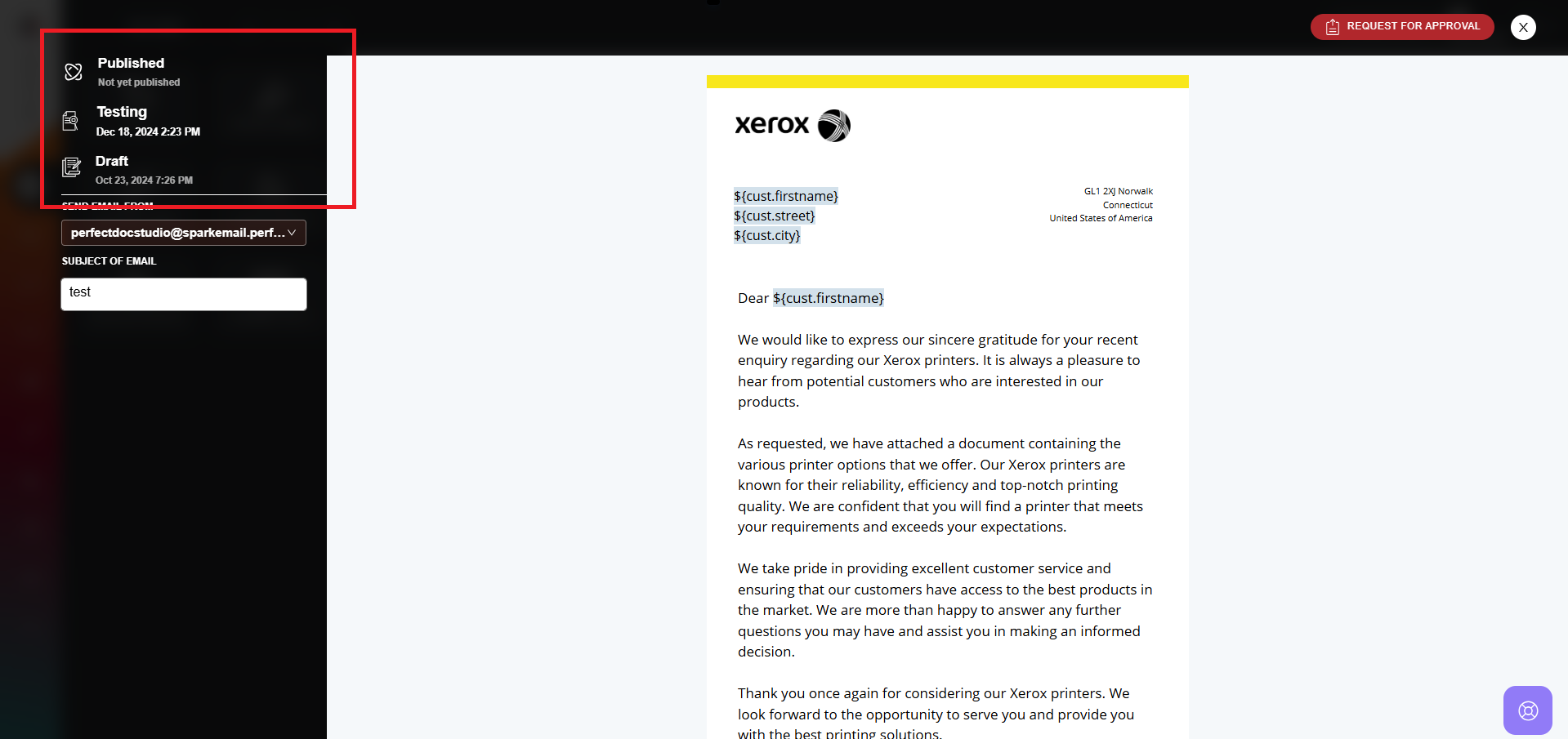 Once a template is finalized in the Draft environment, it progresses to the Testing phase. This stage is critical for ensuring the template's functionality and compatibility. In this environment, templates are set to read-only mode, and the following key tasks are performed: