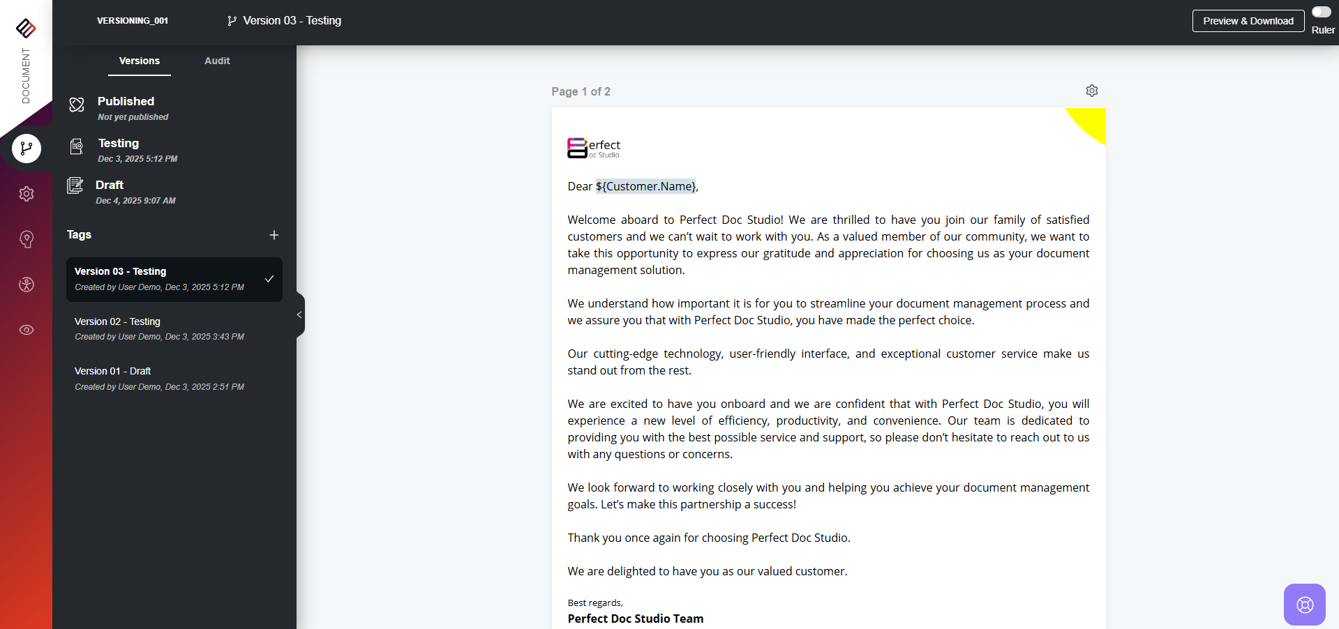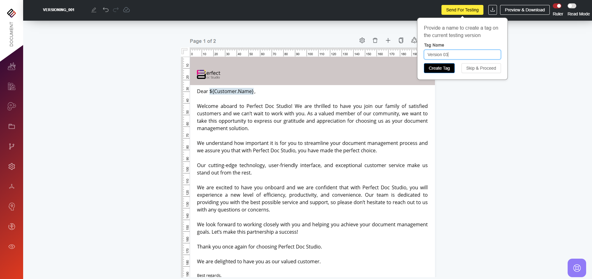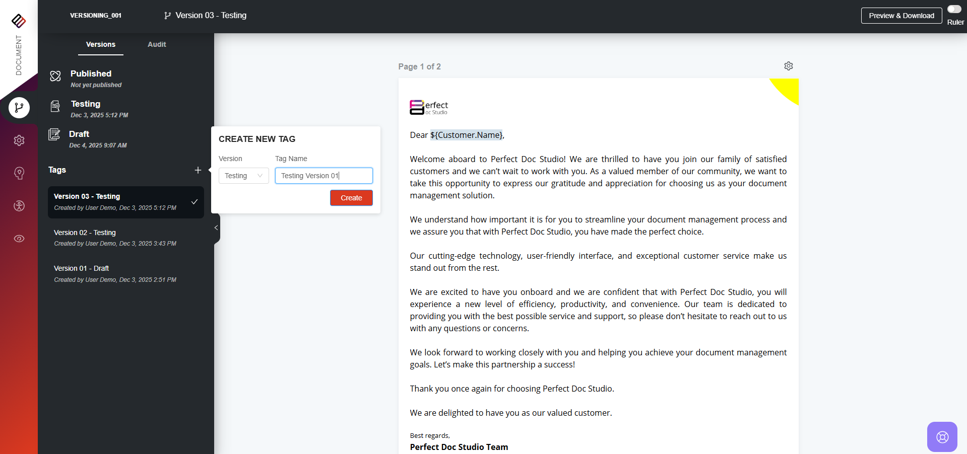 How to Create a Tag? To create a Tag for your document version in Perfect Doc Studio, follow these steps:
